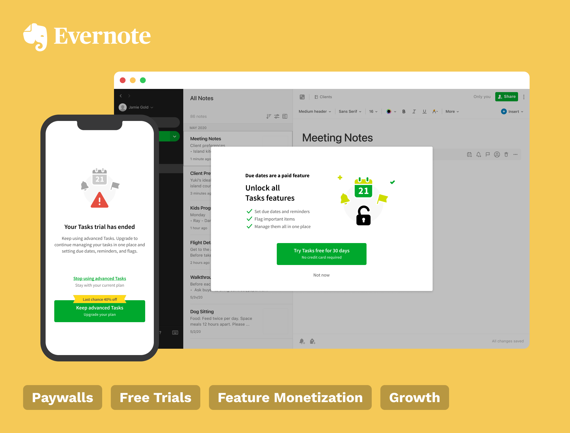 Designing and implementing paywall and free trial strategies to monetize the new Tasks feature.