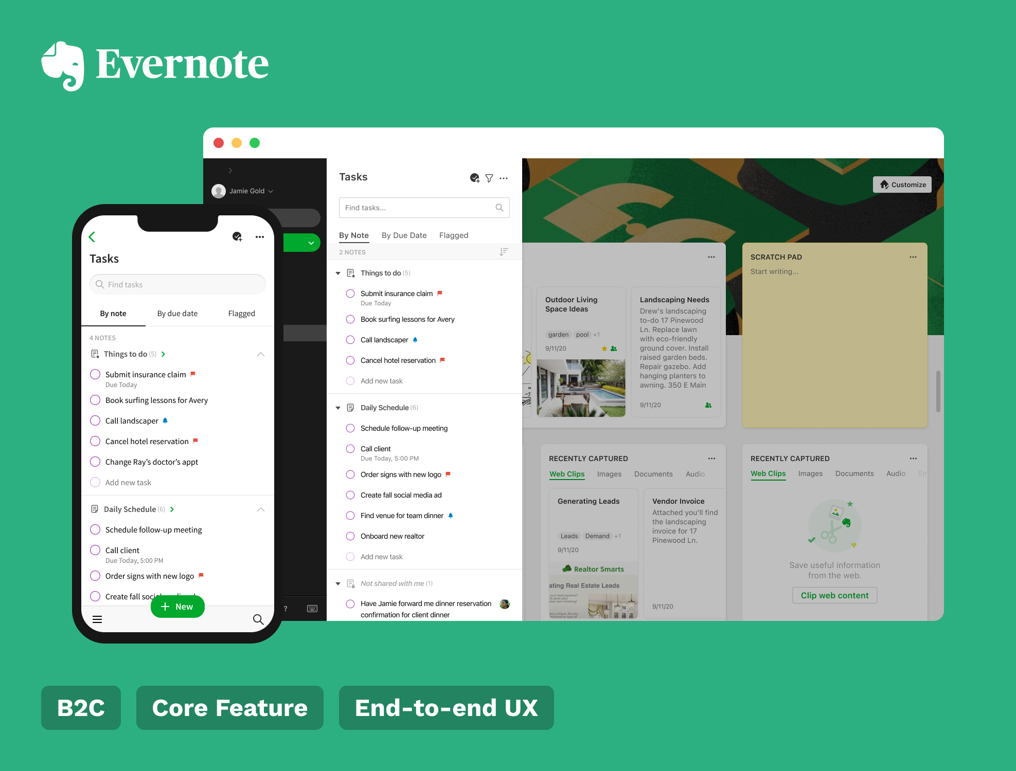 Designing a full-featured task management system within Evernote to help users track tasks alongside notes.